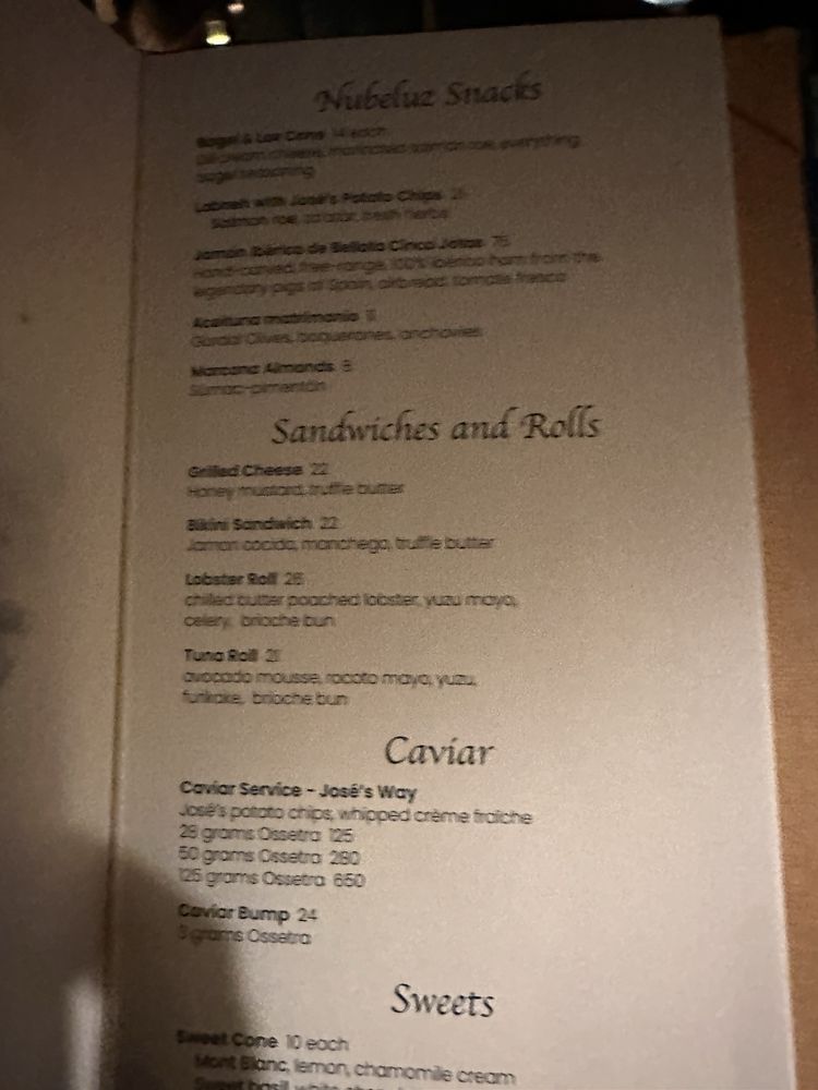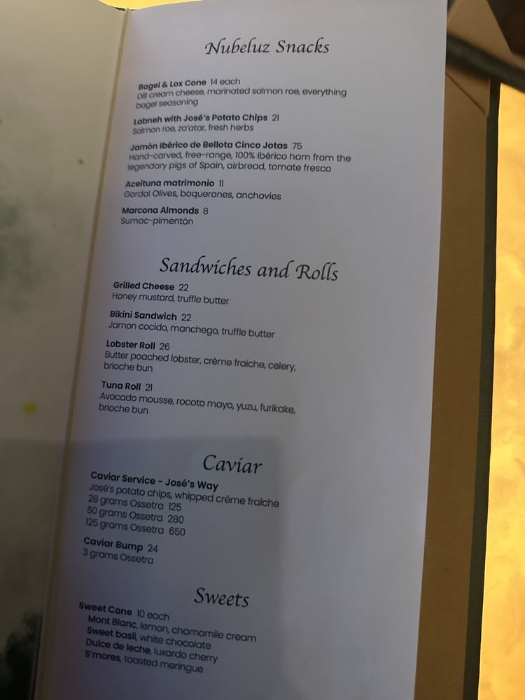 “ Located at the Ritz Carlton, Nomad. Walking distance from Penn Station. The Ritz is beautiful! Love the dark, natural vibes. Check in for Nubeluz is downstairs past concierge. After check in, we were whisked away on the elevator to the rooftop. Reservations are a must! You might be able to walk in to the bar area but it was pretty busy at 4pm. We made reservations in advance. We went at 4pm because of our flight home but I would definitely go back at 4pm again. We were able to see the sunset and the city in the evening. Amazing! We started off with cocktails which are an experience. From the look to the taste, Jose André thought of everything. We started off with the caviar service with was amazing! Caviar, crème fraiche, and chips on dry ice. Pretty amazing. We had another round of cocktails, the tuna roll, and a lobster roll. Everything was fantastic! The service was great. There is a time limit of 1.5 hours and the server will let you know when your time is approaching and if you have time for additional food/drinks too. ”